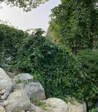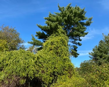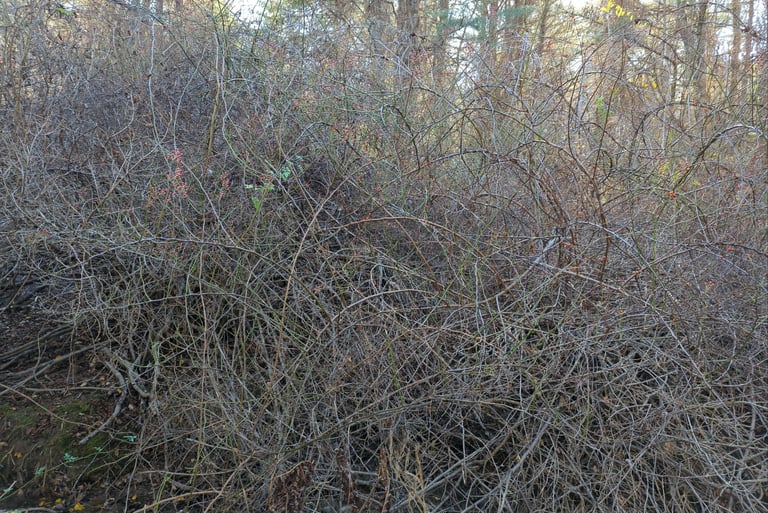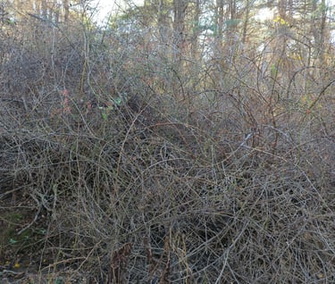 A mature stand of invasive honeysuckle.